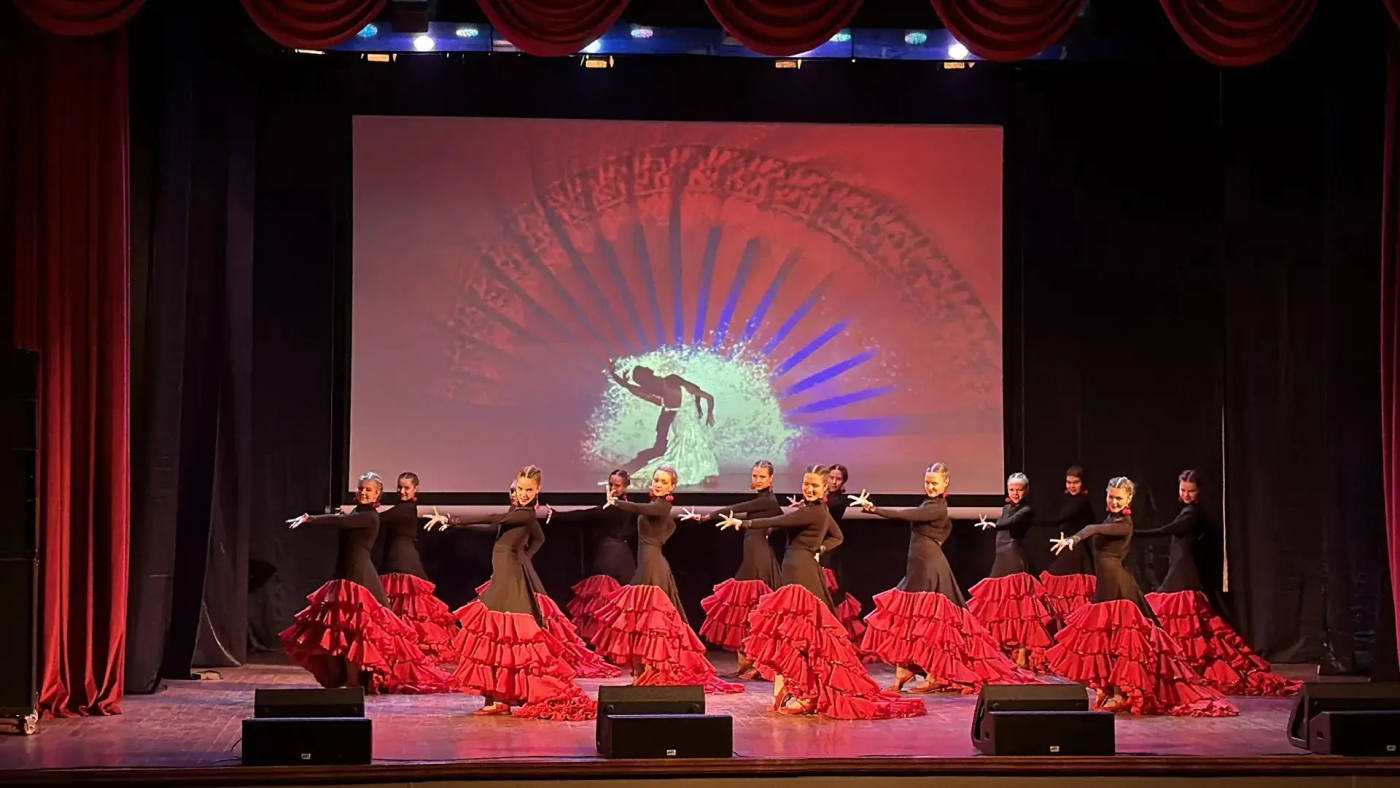 Не менее ярким стало выступление Детского театра танца «Калинка» (руководитель Ирина Рыжкова, г. Рославль), представившего сразу два колоритных номера. Испанский «Фламенко» предстал во всей своей страсти и драматизме: характерные хлопки, чёткая дробь каблуков и выразительная работа рук создали атмосферу подлинного испанского темперамента.